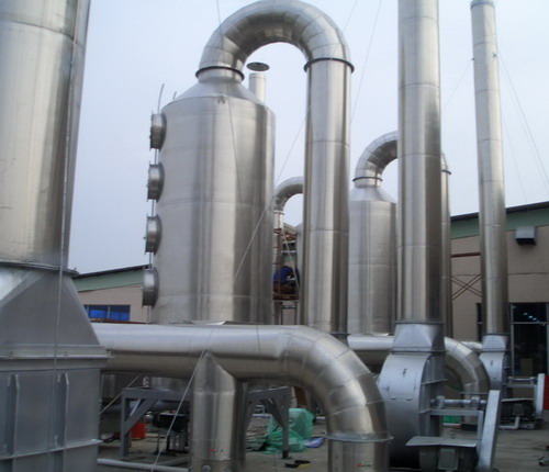 洗涤塔原理主要是根据臭气的成分利用强酸(硫酸)、强碱(氢氧化钠)、强氧化剂(次氯酸钠)作为洗涤喷淋溶液与气体中的臭气分子发生接触,使气相的臭味成分转移至液相,并借助化学药剂与臭味成分中和、氧化反应去除臭味物质。